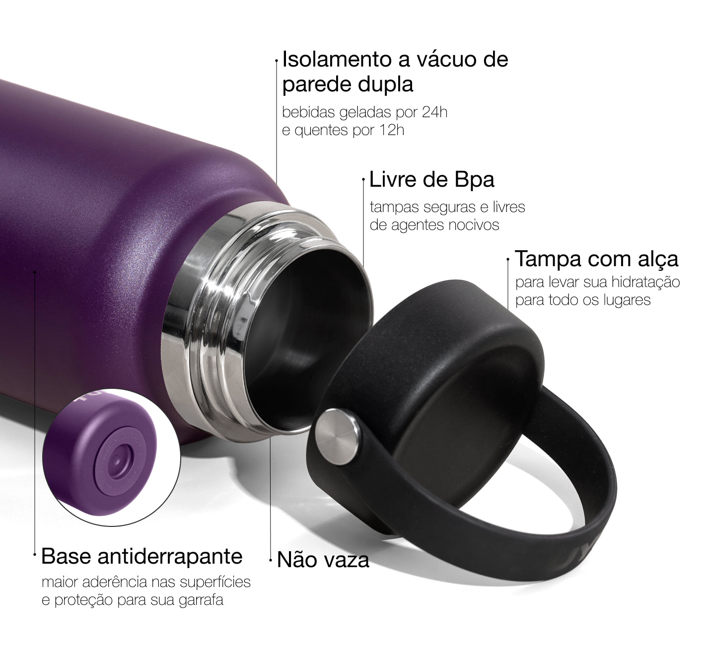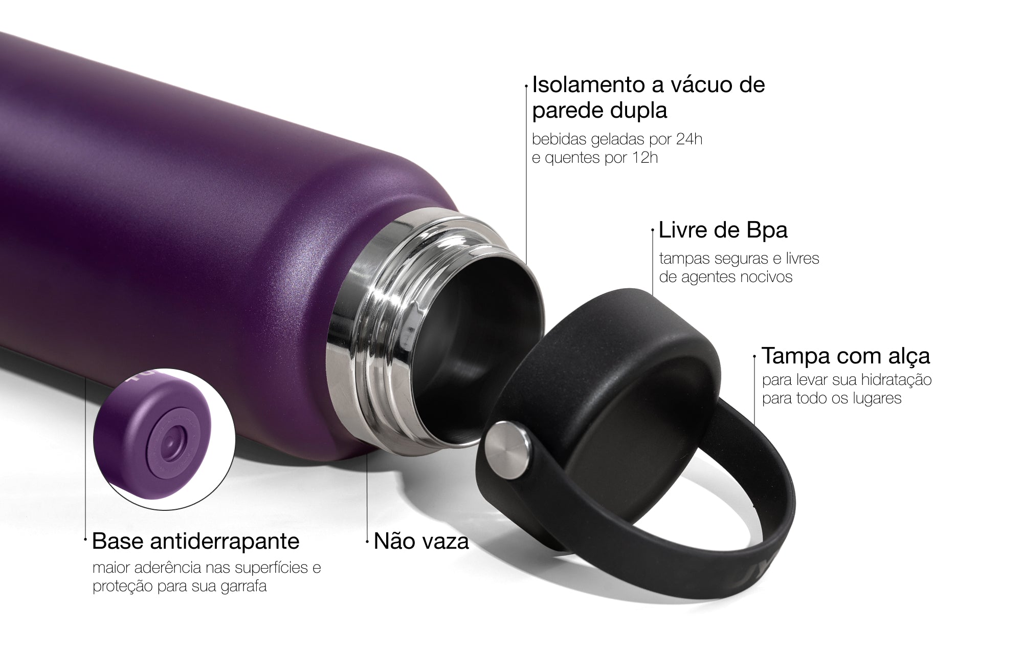 Recomendamos higienizar a sua garrafa e tampa com sabão neutro e esponja de baixa abrasividade.