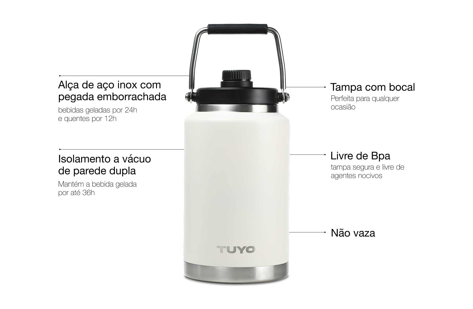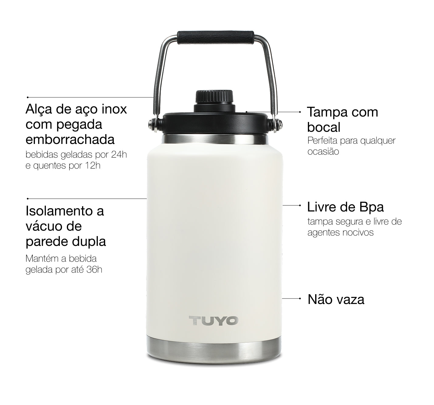 Os Growlers TUYO contam com a tecnologia de isolamento térmico TempKeeper™ que é capaz de manter sua bebida gelada por até 36h. Sua bebida na temperatura ideal por muito tempo para a sua aventura.