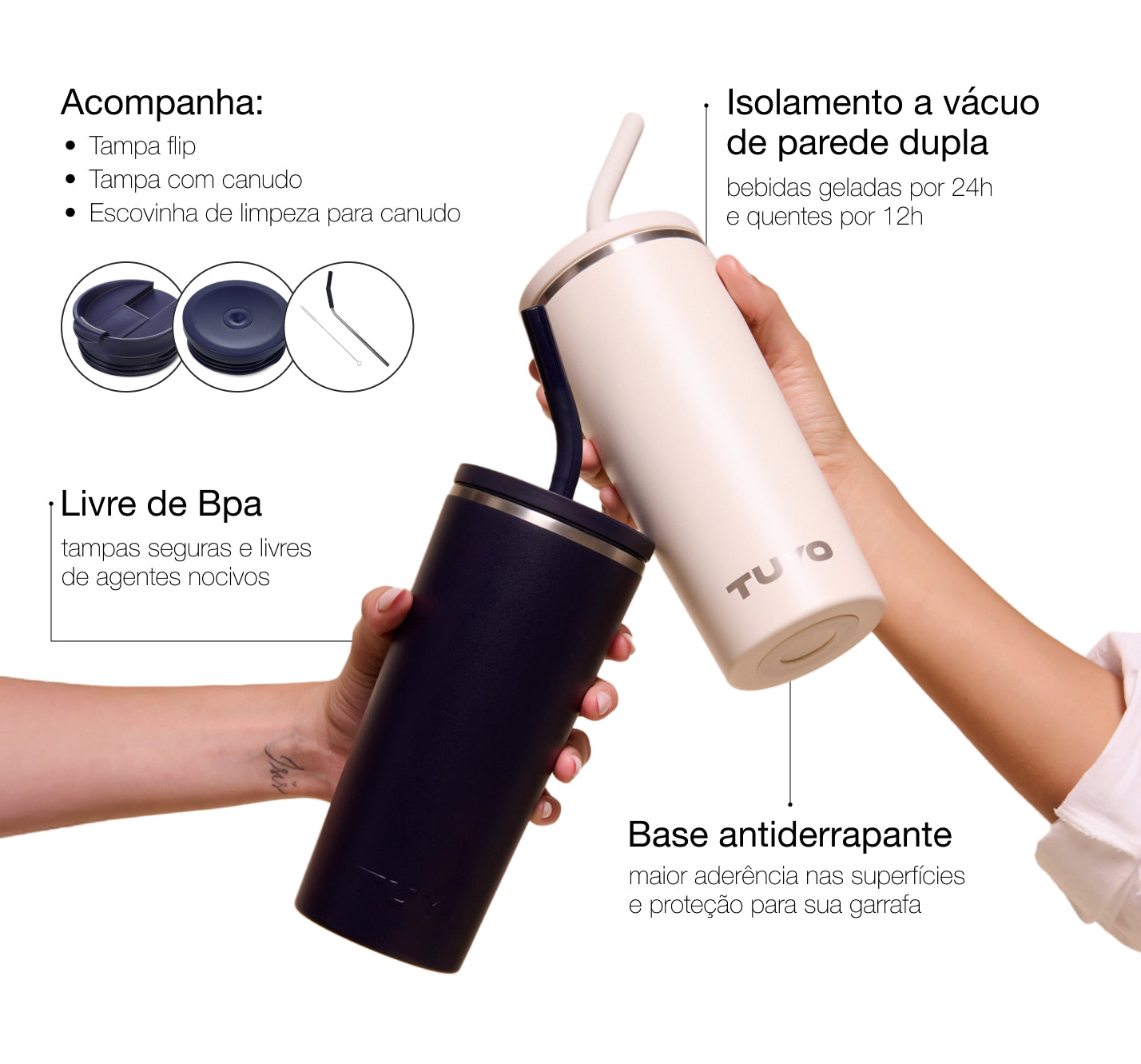 Isso significa que a troca de calor é mínima, mantendo a sua bebida na temperatura ideal por muito tempo.