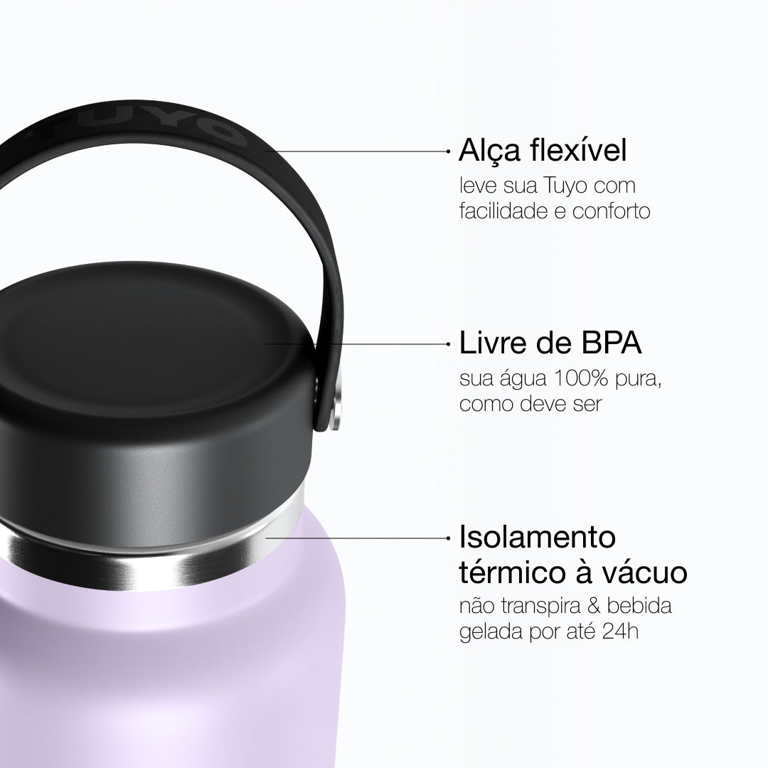 As garrafas TUYO contam com a tecnologia de isolamento térmico TempKeeper™ que é capaz de manter sua bebida gelada por até 24h e quente por 12h. Sua bebida na temperatura ideal por muito tempo.